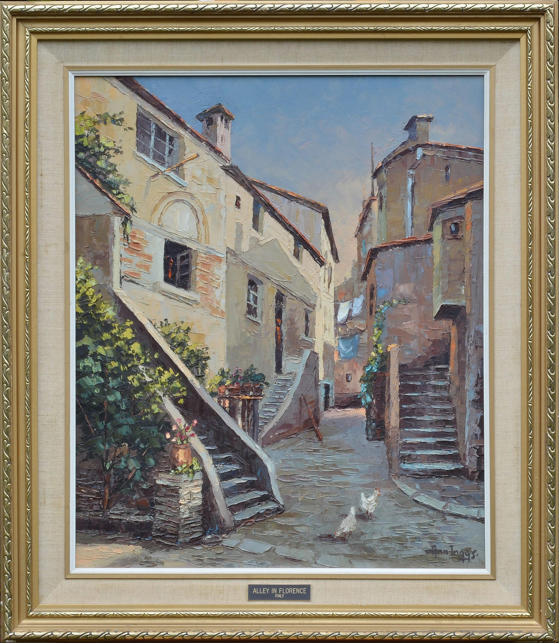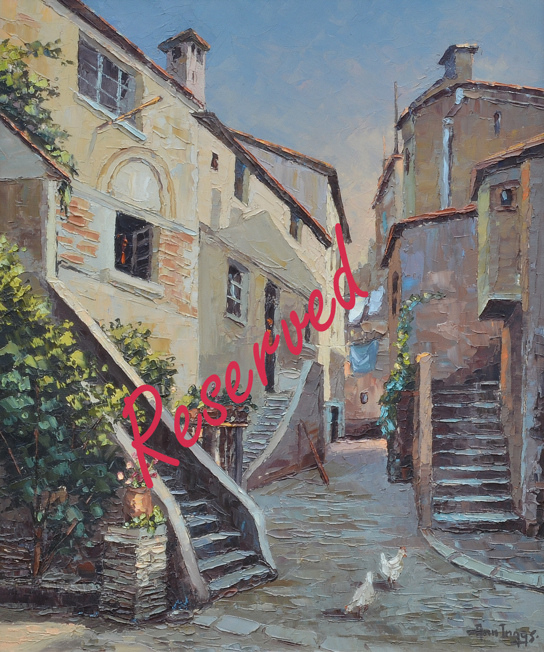 Ann paints in oils using brush and palette knife. She is much in demand for her historical works, street scenes, harbour scenes, and many other scenes around South Africa. Ann is a traditional realist. Her colours and style are unique, generating a warm and sunny character with a zest for life all around her.