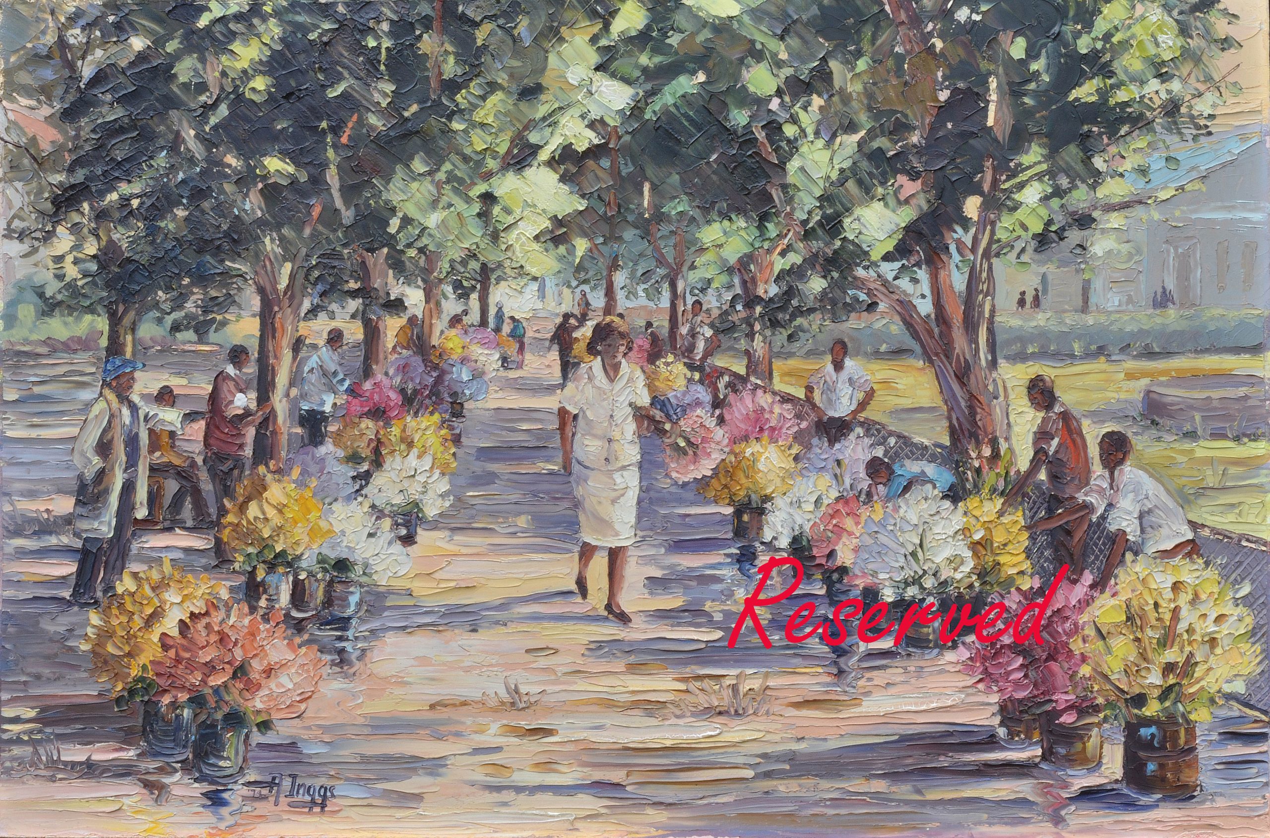 Ann paints in oils using brush and palette knife. She is much in demand for her historical works, street scenes, harbour scenes, and many other scenes around South Africa. Ann is a traditional realist. Her colours and style are unique, generating a warm and sunny character with a zest for life all around her.