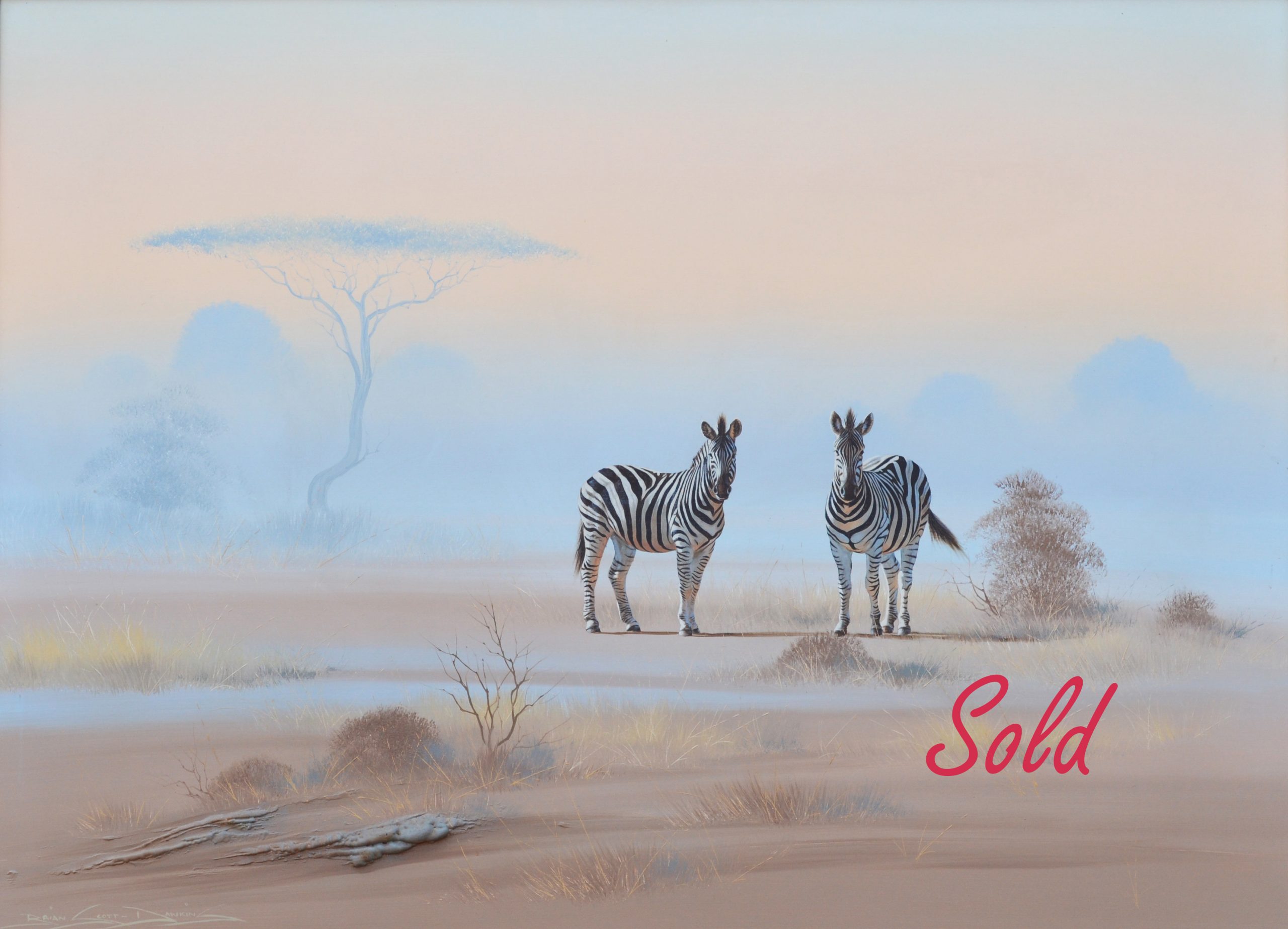 Brian developed his distinctive style of pastel-coloured, semi-desert wildlife art in 1985. They were an immediate hit and sold so rapidly that the artist was not able to accumulate a sufficient amount of paintings for a one-man exhibition. His paintings are very popular locally and abroad.