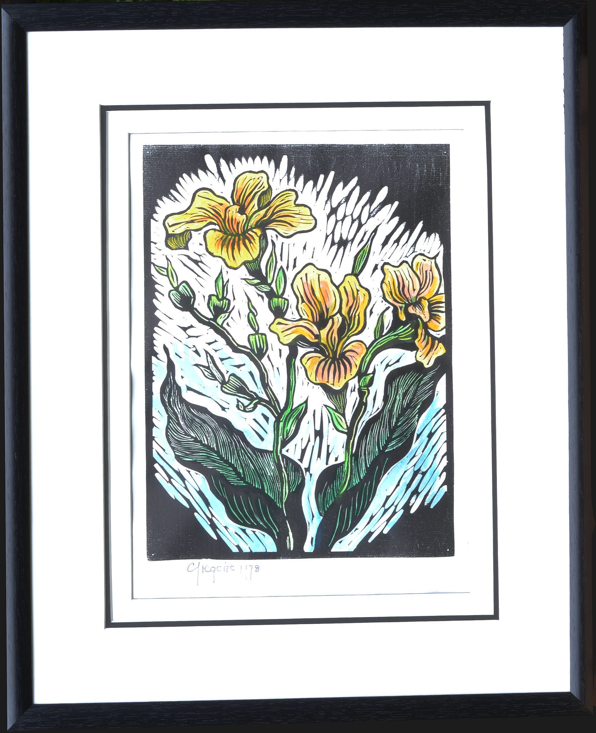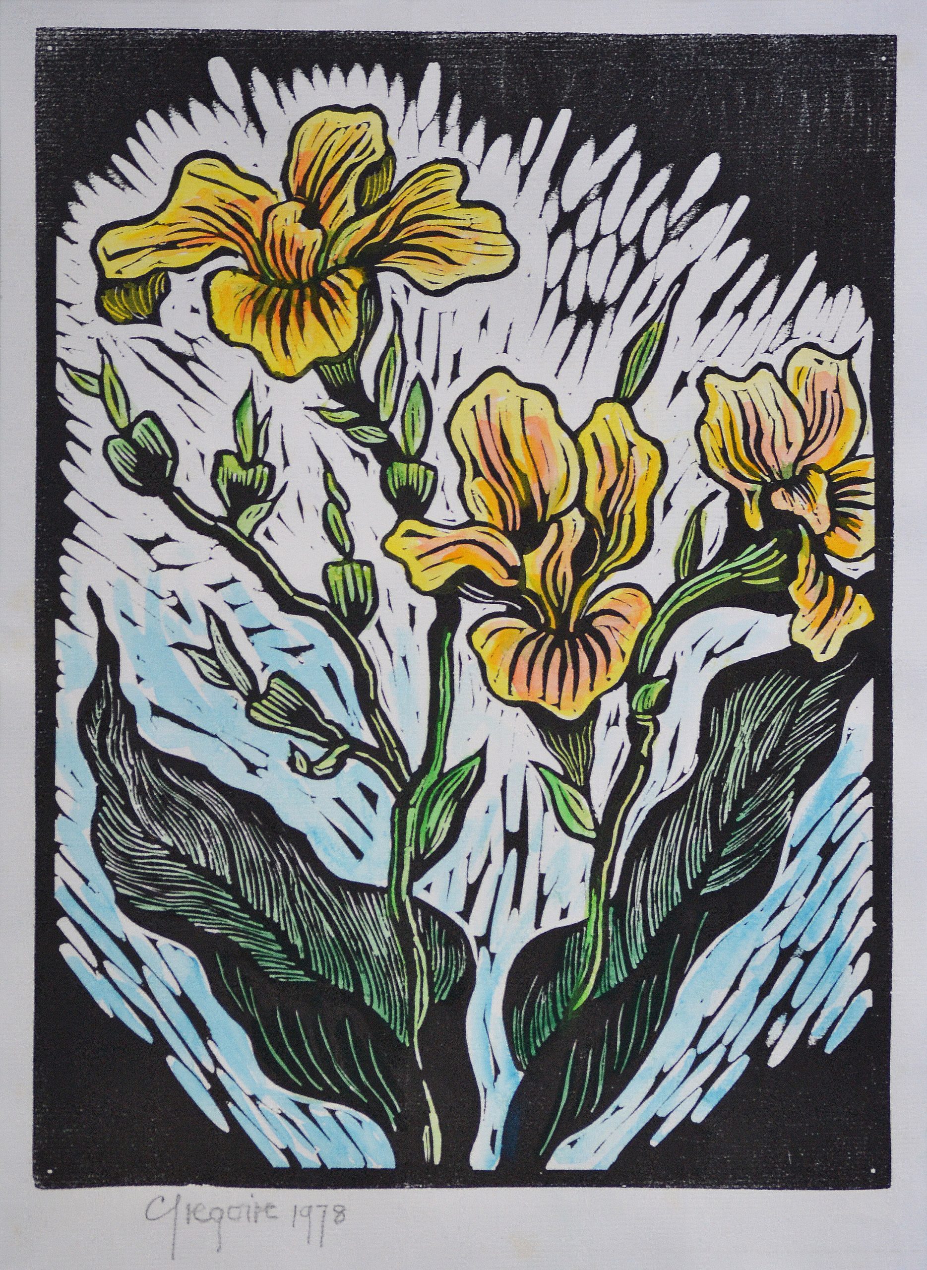 Gregoire Boonzaier – Yellow Canna Lilies Linocut