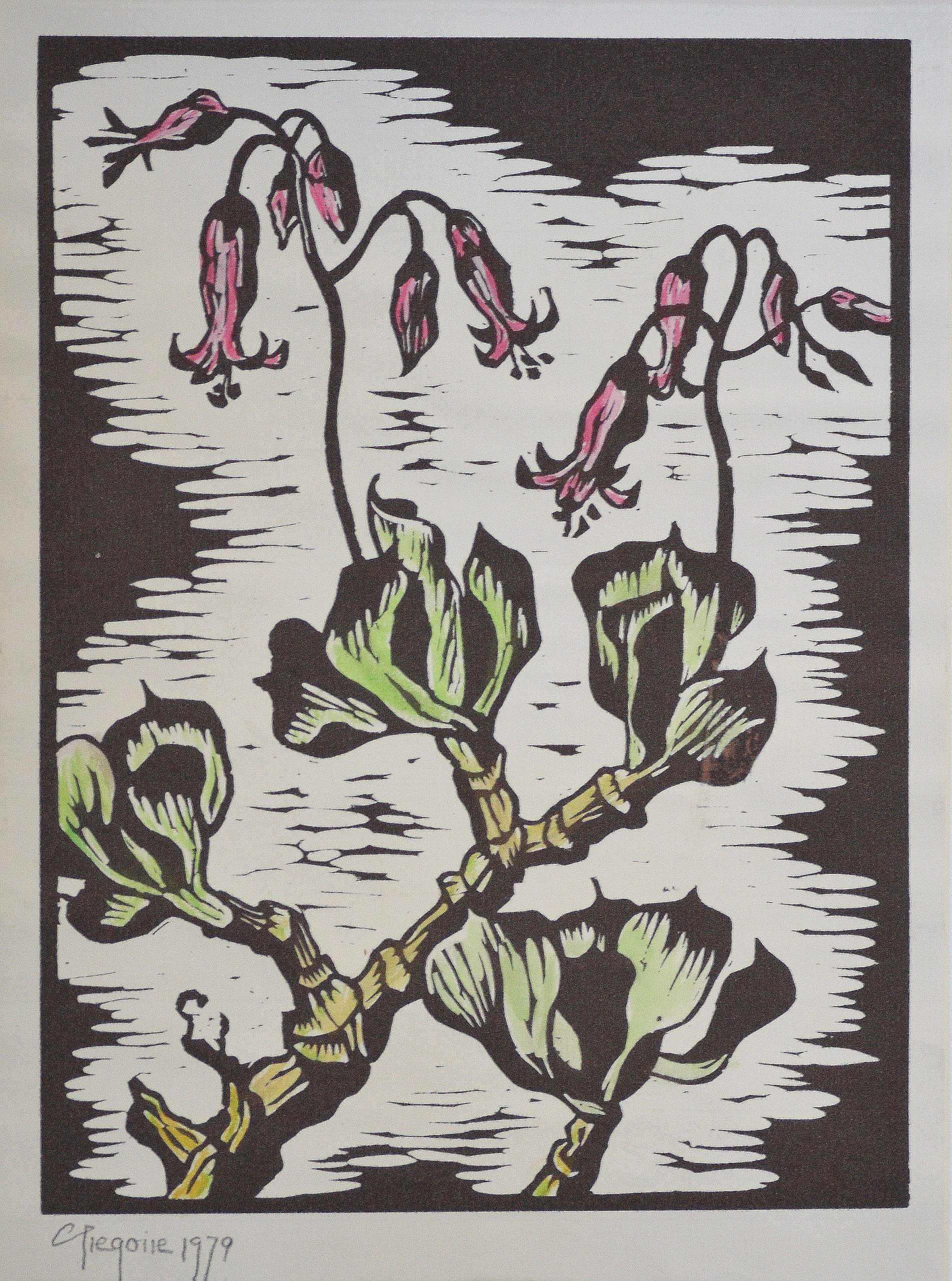 Gregoire Boonzaier – Cotyledon Flowers Linocut
