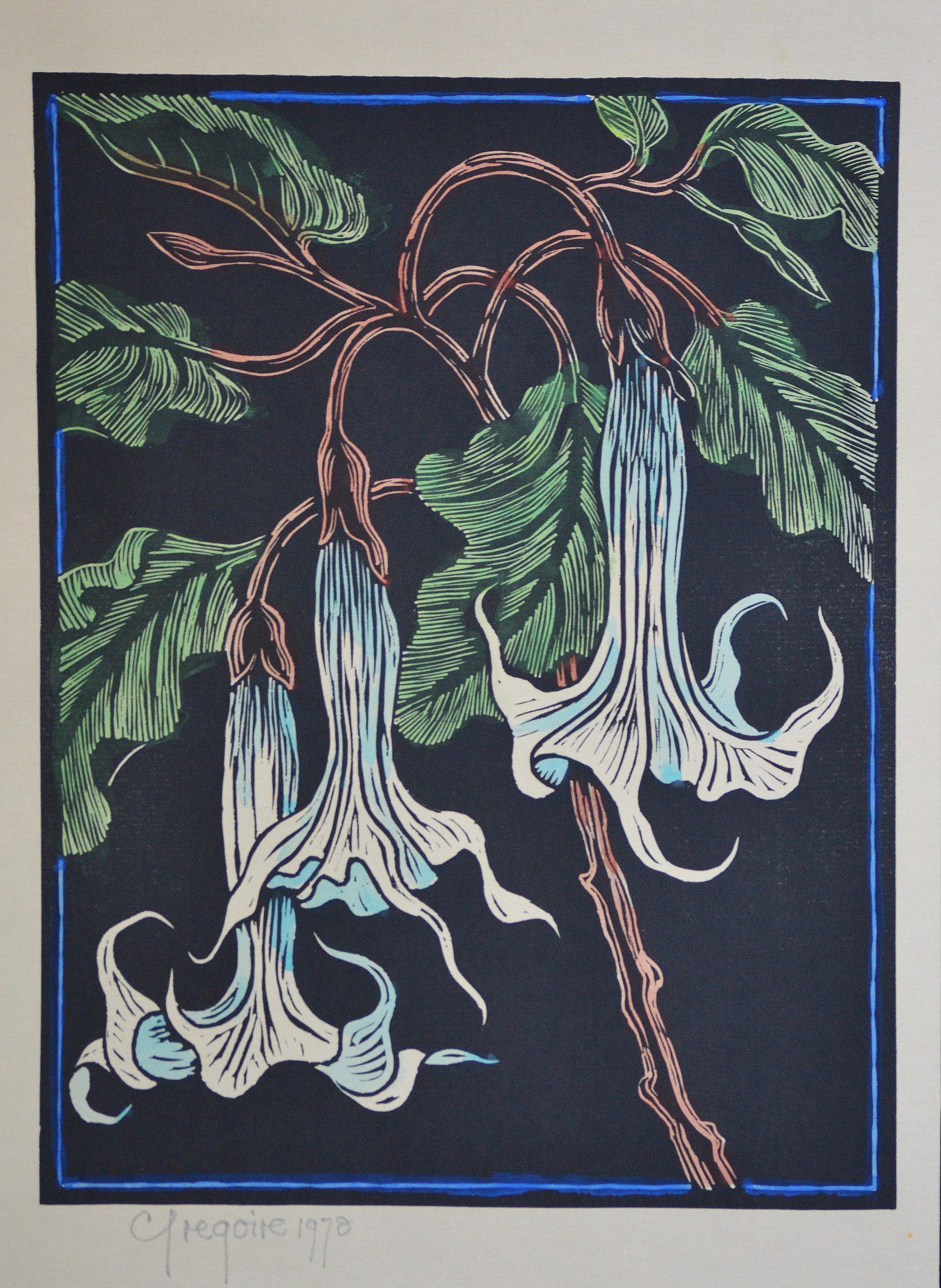 Gregoire Boonzaier - Moon Flowers Linocut