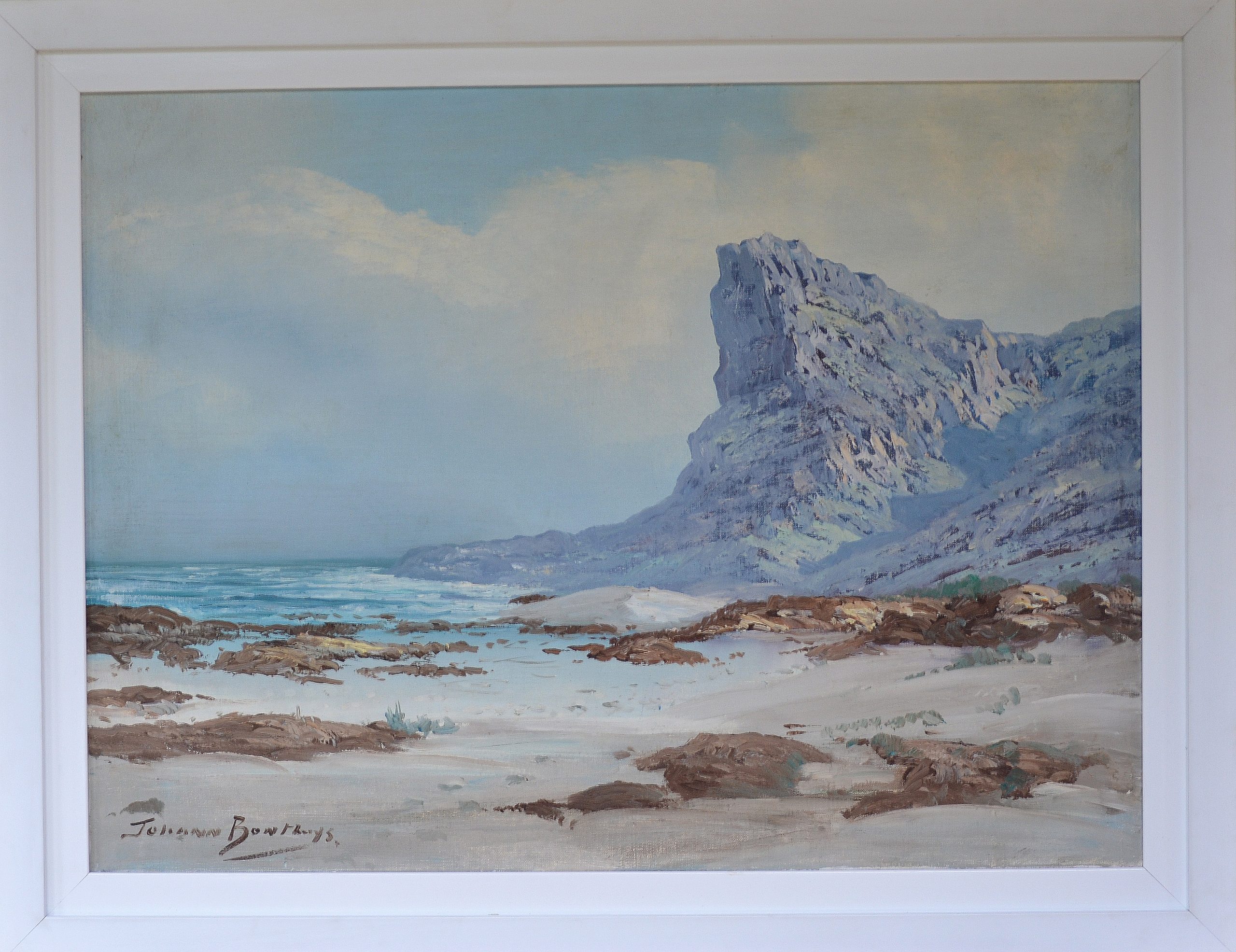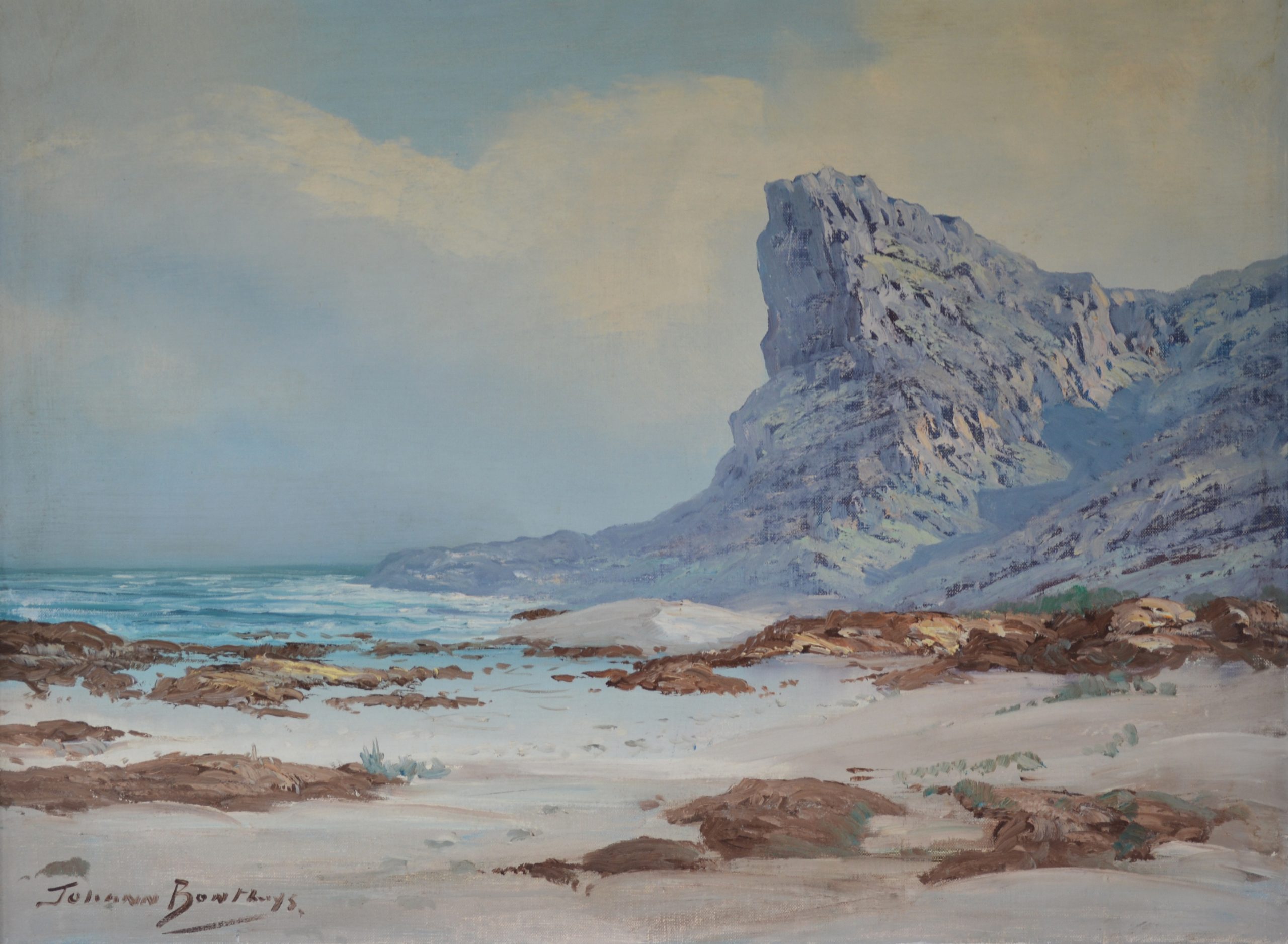 Johann Bonthuys was a 20th-century South African landscape artist known for his oil paintings of Cape landscapes, featuring mountains, coastal scenes, and cottages. His work is characterized by scenes of the Boland and Western Cape, often collected by individuals and corporate clients.